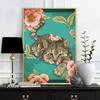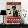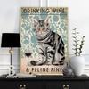 Cat Floral Leaf Wine Prints Poster, Animals Plant Art Canvas Painting, Vintage Cute Funy Home Restaurant Bedroom Kids Room Decor Gift No Frame