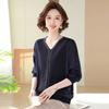 Middle-aged and old women's casual bottoming shirt, mother's spring fashion shirt, solid color noble collar, large size thin knitted sweater