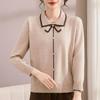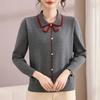 Mom's autumn shirt new early autumn lapel sweater spring and autumn long-sleeved knitted bottoming shirt women's top