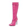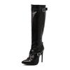 Neue glänzende hohe Stiefel Damen Sung Fit Kniehohe Stiefel Sexy Stiletto Nieten Dekor Seitenreißverschluss Dünne hohe Absätze Schuhe