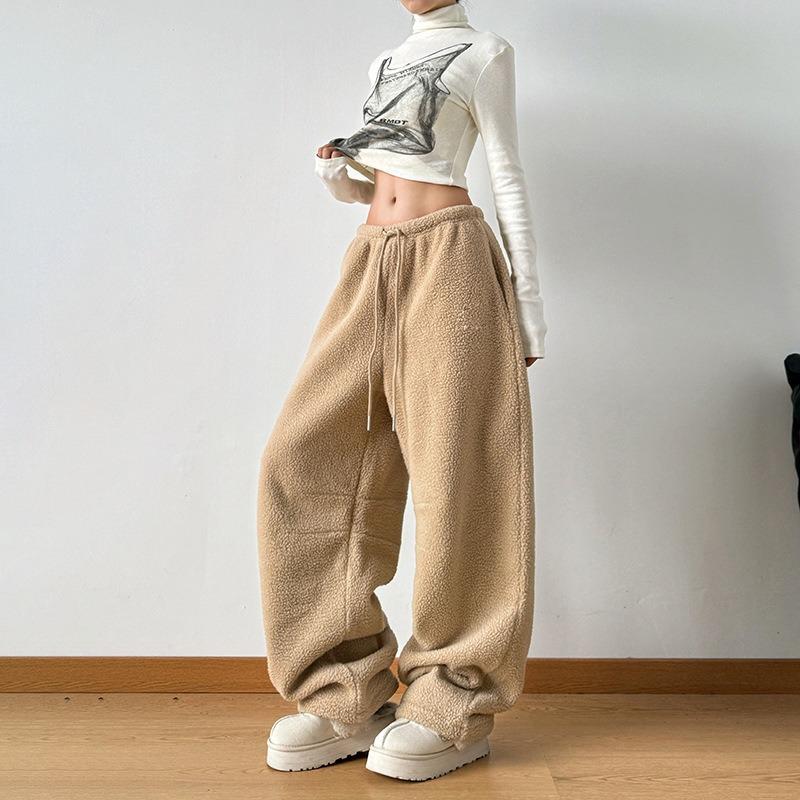 Fleece fleece wide-leg pants women's new winter thickened lazy wind loose casual pants slim straight pants