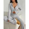 Western Style New Solid Slim fit Zip-up hood Top Casual Pants Two-piece Set Top and Pants Set
