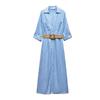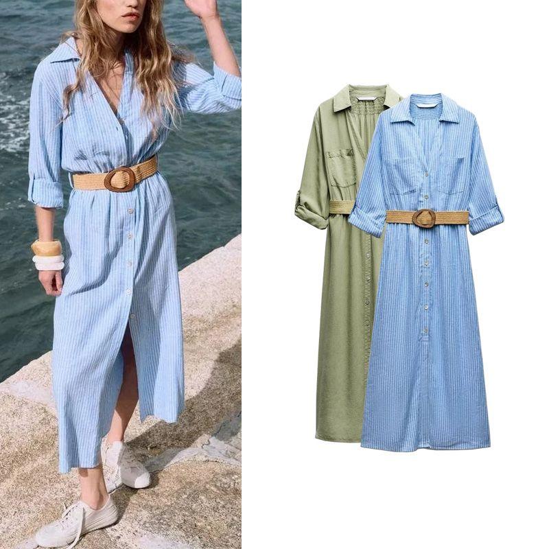 Spring and Summer New Casual V-neck Hemming Sleeve Jute Belt Shirt Style Dress 8372077 4387062