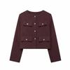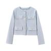 Summer New Product Women's Clothes French Style Classic Style round Neck Long Sleeves Flip Decoration Short Jacket 3046278