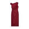 Spring and Summer Women's Clothing Gold Inlaid Boat Neck Sleeveless Linen Blend Ruched Midi Skirt Dress 2840709