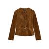 Fall New Women's Clothing French round Neck Long Sleeves A- line Hem Pu Imitation Leather Jacket Outwear 6318232