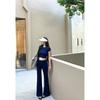 Kumikumi Gyaru Set Simple Solid Short sleeve T-shirt Women Summer High Waist Casual Pants Bootcut Trousers Two-piece Set