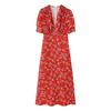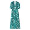 Kaslead New Women clothes Western Style Fashion Simple Two-Color Pleated Decoration V-neck Print Dress