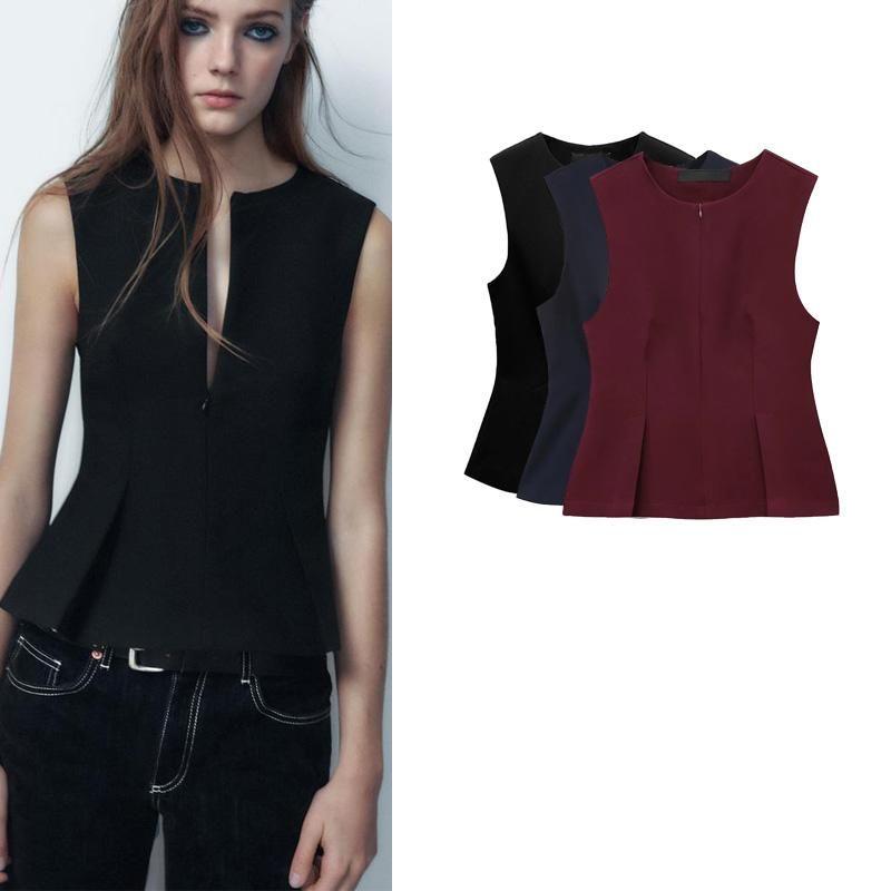 Fall and Winter New Women's Clothing Retro Short Skirt Hem Pleated Sleeveless Tops 2135552 2035552
