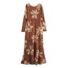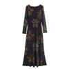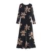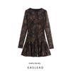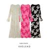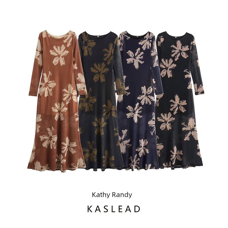 Kaslead New Arrival Women's Clothing Fashion Style Fashion Silm Print Mesh Cinched Hip Bag Long Sleeves Dress