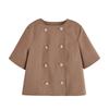 Short Sleeve round Neck Double Breasted Decorated Row Button Tops 2902835 High Waist Straight-leg Minimalist Casual Pants 2899835