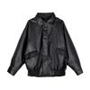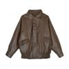 Retro Coffee Color Jacket Fall Loose Long Sleeves Leather Coat