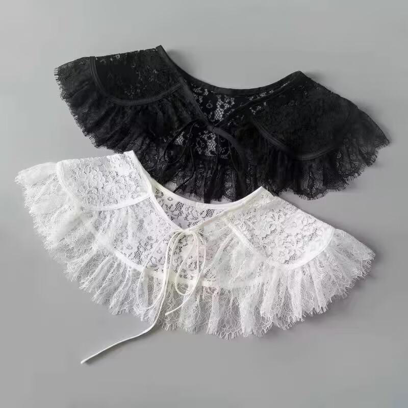 Embroidery Eyelash Lace Shawl Wrap Fake Collar Hollow Solid Color Sweater Decoration Collar Cape Dresses Accessories For Women