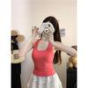 Kumikumi Gyaru Wind Solid Hanging Neck Sleeveless Vest Women clothes Summer New With Chest Pad Slimming Outer Wear Top