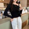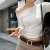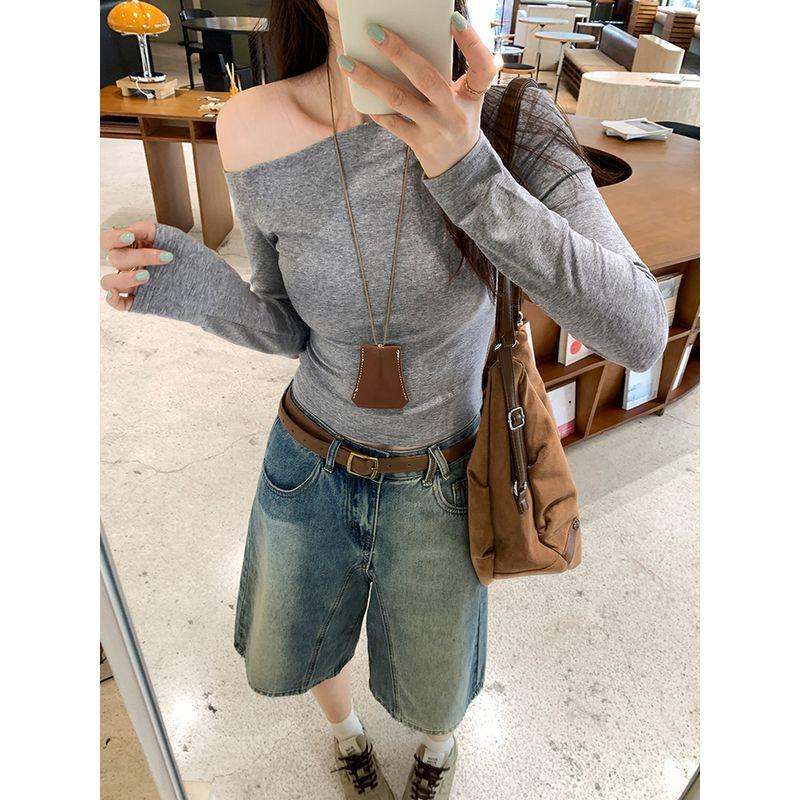Kumikumi Design Gray Sloping Shoulder Long sleeves Shirt Women Autumn Niche All-Match Loose Slimming Casual Top