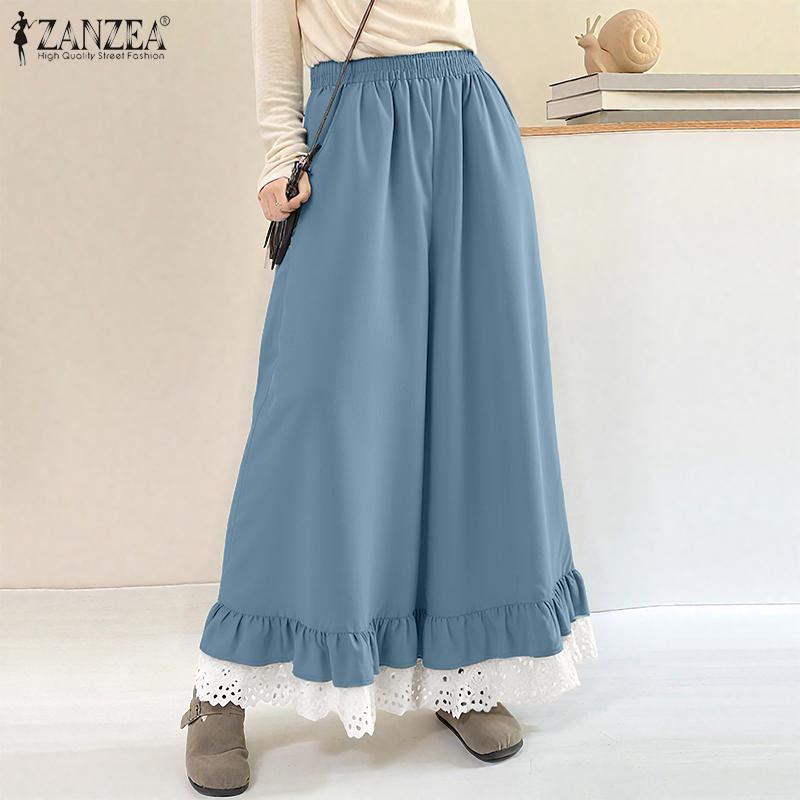 ZANZEA Damen Spitze Einsatz Lässige Elastische Taille Weite Hose