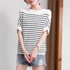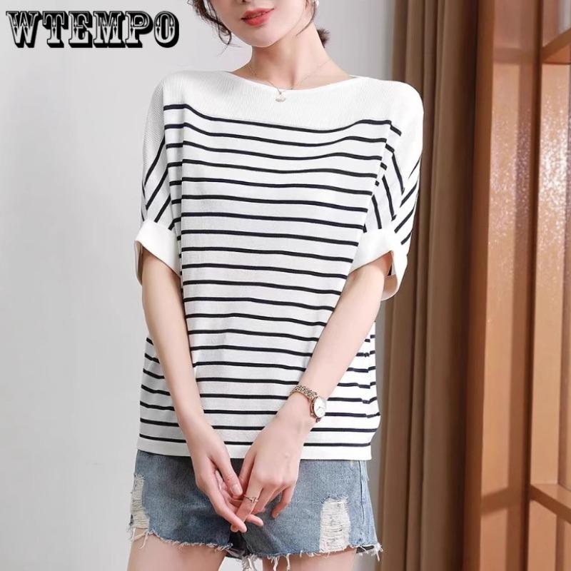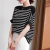 Sommer Damen Eis Seide Kurzarm Oberteil Locker Dünn Gestreift Pullover Gestricktes T-Shirt