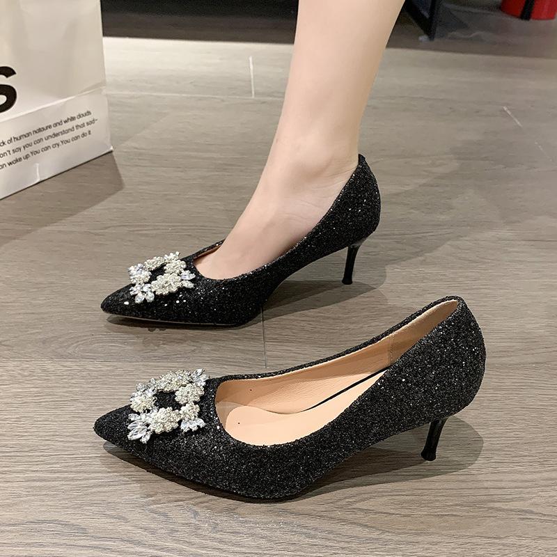 Strass Pailletten flache hohe Absätze Damen 2025 Sommer neue Ein-Pedal Damen Schuhe, dünne Absätze machen nicht müde, und einzelne Schuhe werden draußen getragen