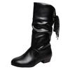 Neue Herbst- und Winter-Spezial-Studenten-Ritterstiefel, niedriger Absatz, runde Spitze, Schnürung hinten, thermische mittelhohe Stiefel für Damen