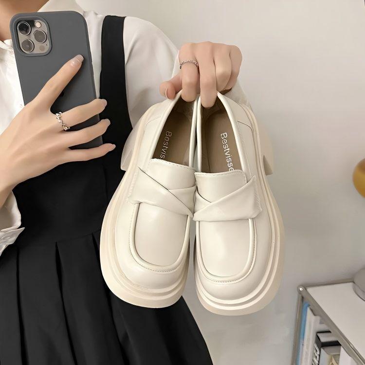 Plateau dicker Absatz Französisch Weiß High Heels Damen 2025 neu Frühling und Herbst Britisch vielseitig Mori Slipper kleine Lederschuhe
