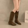 Vintage Brown Mouth Pile Medium Boots Women's Shoes Spring Autumn Winter Pointed Western Cowboy Boots