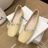 Mary Jane Schuhe Damen 2025 Sommer neu flacher Ausschnitt eckige Spitze dicker Absatz Einzelne Schuhe Französisches Temperament Perle weiche Sohle kleine Lederschuhe