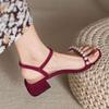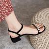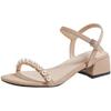 Weiches Leder mit französischen Perlensandalen Damen 2025 neu Sommer flacher Boden Römisch Abendbrise sanfter mittlerer Absatz schwarz