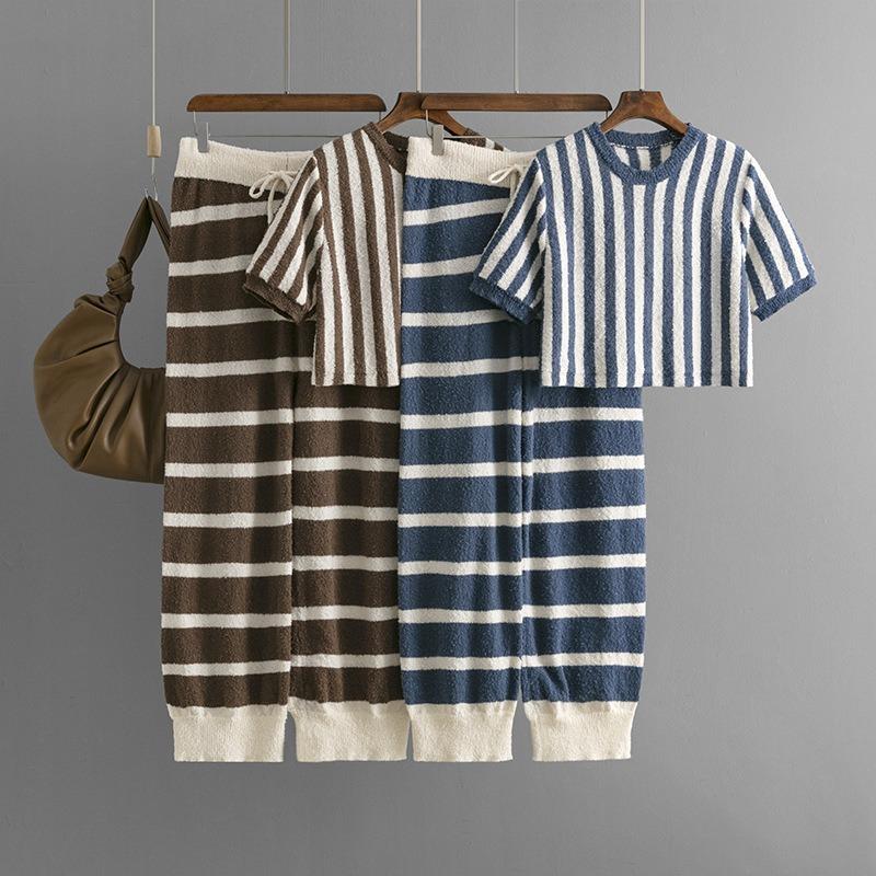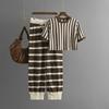 Summer new striped crew neck short top casual knitted sweater, suit women