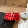 Traubenmutter mit dem gleichen runden Kopf atmungsaktives Doppel-Klettverschluss altersreduzierendes Leder leichte Mund Mary Jane Schuhe einfach kontrastierende Farbe deutscher Zug