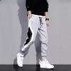 Men's Autumn Winter Fleece Lined Warm Casual Black Long Pants Color Block Style Sports Sweatpants Loose Cuffed Pants