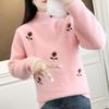 Mink fleece sweater women's outer wear - autumn and winter new loose temperament thickened embroidered semi-turtleneck knitted sweater