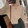 Autumn new gentle and simple style solid color single-breasted knitted cardigan women's casual versatile crew neck sweater women's
