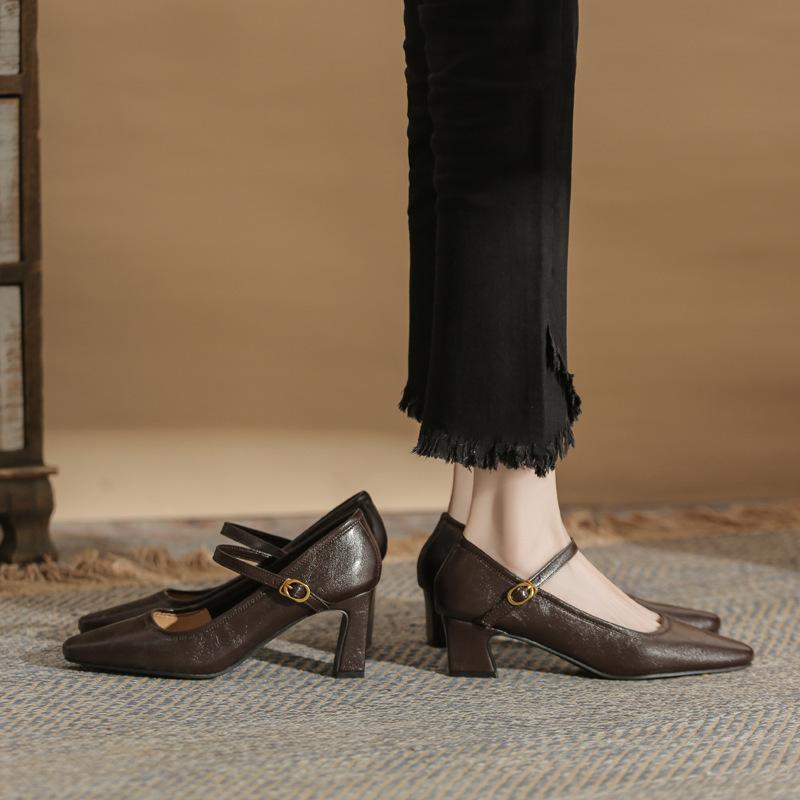 Weiches Schaffell Dicke Ferse Einzelne Schuhe Damen Quadratischer Kopf 2025 neue große Größe Mary Jane Schuhe kleine Größe Französisch vielseitig leichte Mündung einzelne Schuhe