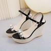 Keilsandalen Damen Sommer 2025 neu Koreanische Version vielseitig Strass Perlen dicksohlige wasserdichte Plateau Super High Heel Sandalen