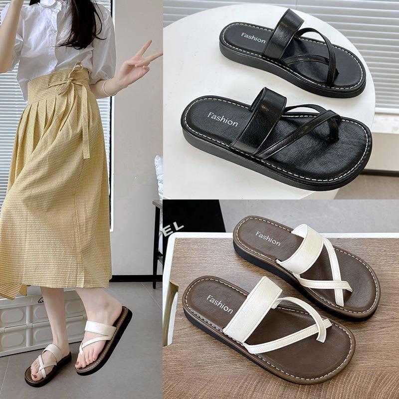 Zehensandalen mit gekreuzten Riemen Damen Sommer neu lässig vielseitig Oberbekleidung Retro weiche Sohle bequem Strandhausschuhe