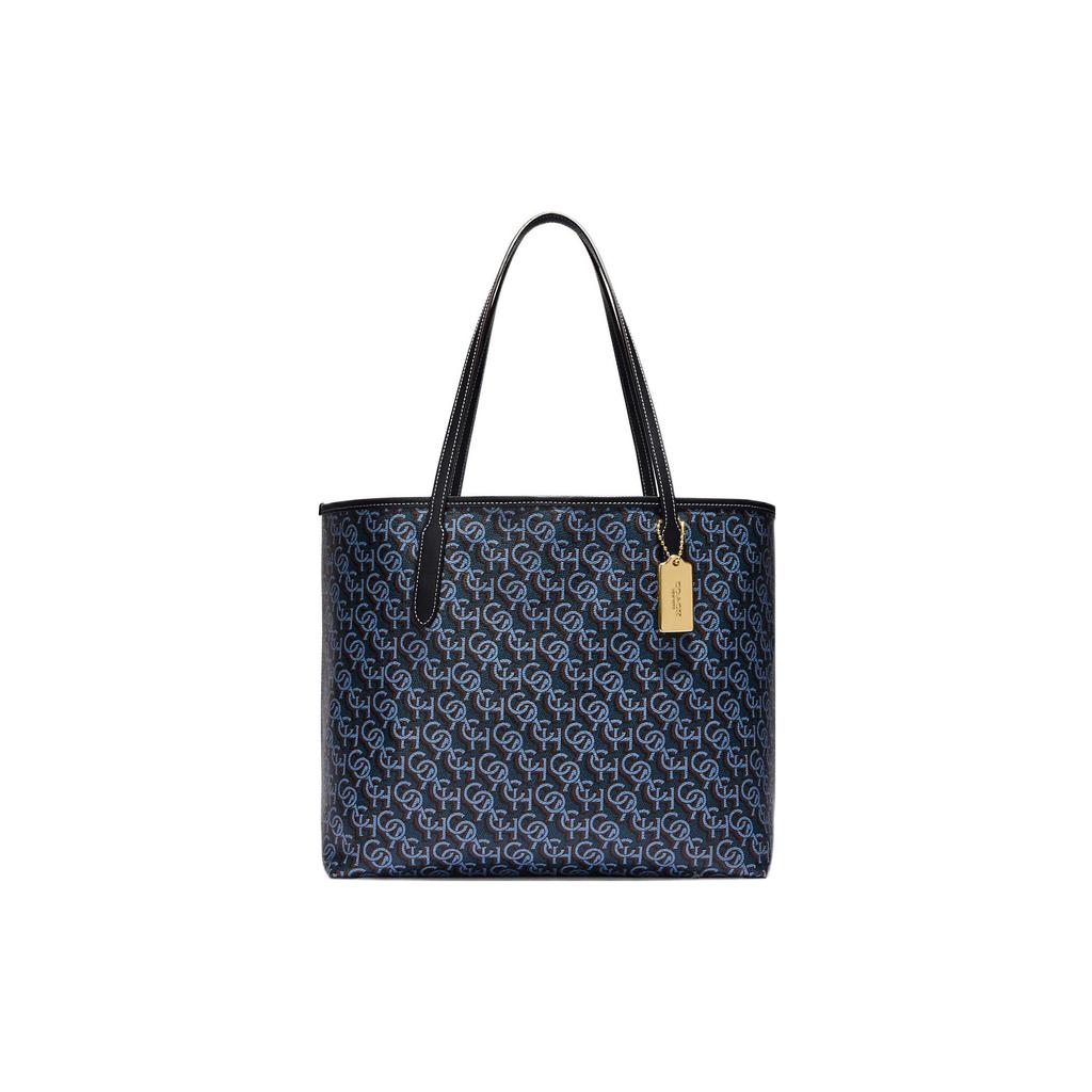 New COACH City Canvas With Leather Tote Bag, Shopping Bag, Handbag, Shoulder Bag Women's Marine Blue CF342-IMNAV