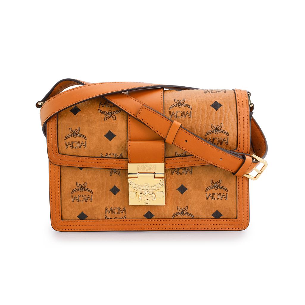 Neue MCM Tracy Visetos beschichtete Canvas mit Lederbesatz Umhängetasche Klein Damen Cognac MWSCAXT01CO001