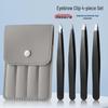 Tragbares Lederetui 4-teiliges Edelstahl Augenbrauenpinzetten- und Wimpernverlängerungsset