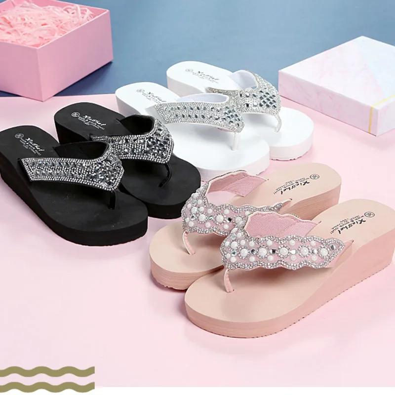 Mode Damen Sommer Sandalen Pailletten Strand Weibliche Flip Flops Damen Hausschuhe Hohe Absätze Schuhe Für Frauen 2025 Plateau Keilabsatz Hausschuhe