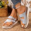 Mode Gummi Flip Flops Damenschuhe Damen Hausschuhe auf Keil Niedrige Plateau Hawaiianisch 2025 Sommer Mädchen Rom Baumwollstoff Pantoletten Huf