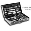Meigo Stainless Steel BBQ Tool Set, 32 Pieces, with Portable Cloth and Aluminum Case Options, New.
