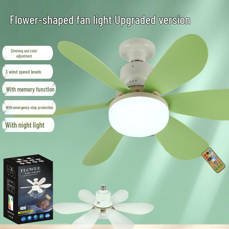 Ferngesteuerte LED-Blumen-Ventilatorleuchte mit E27-Sockel und stufenloser Dimmung für Zuhause