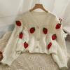 2023 Koreanische Erdbeere 3D Häkelstrickjacke - Damen Grobgarn Langarm Herbst Oberbekleidung