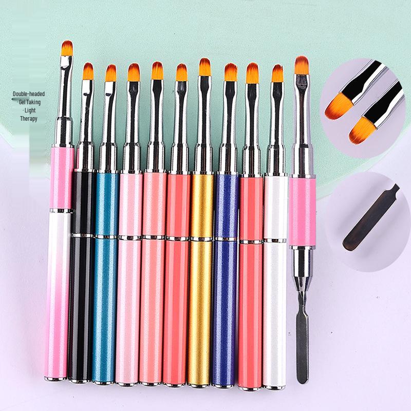 Dual-Ended Nail Art Gel Pen with Metal Pusher and Long Handle