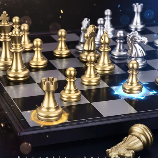 1 Set Medieval Chess Magnetic Board Intellectual Development Golden Silver Color Foldable International Chess Board Game for Family