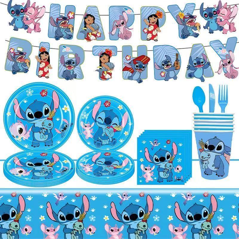 Lilo & Stitch Blaues Thema Geburtstagsparty-Set: Wimpel, Teller & Besteck