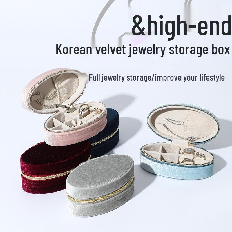 Vintage Samt Oval Schmuckaufbewahrungsbox mit Reißverschluss - Mini Tragbare High-End Verpackung