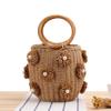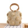 Handcrafted Fashion Bucket Bag: Pearl & Flower Woven Paper Rope Design