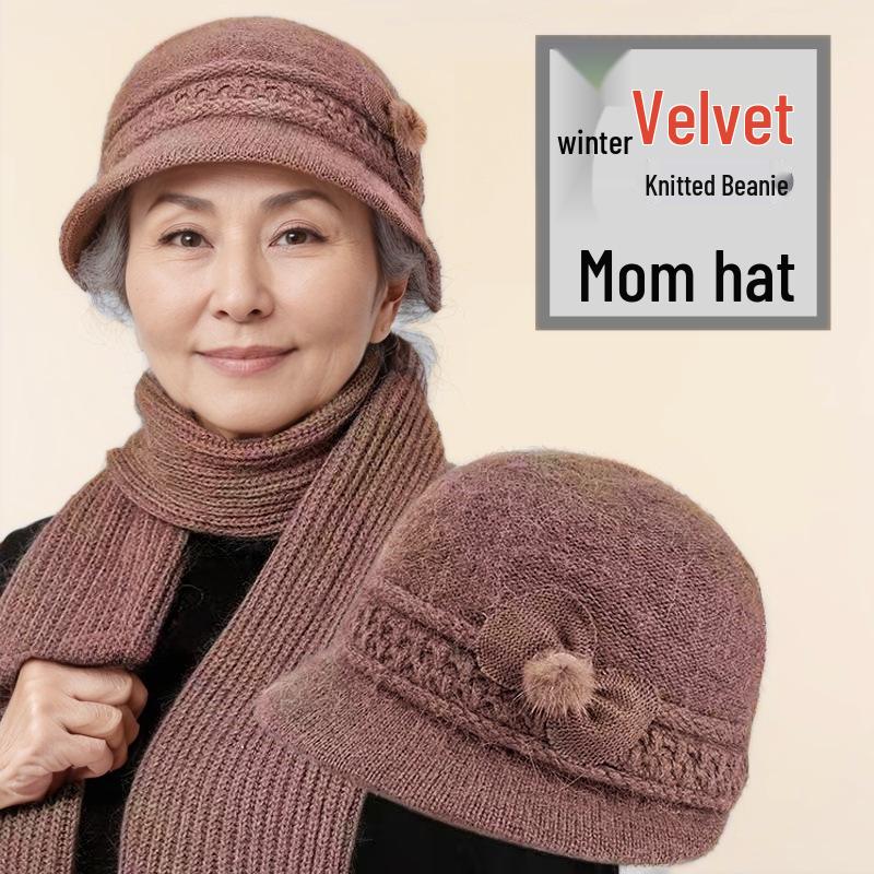 Damen Herbst- & Winter Strickmütze und Schal Set aus Wolle für Mittelalte & Ältere