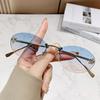 Women's F-Initial Rimless Oval Sunglasses with Diamond Accents - Fashionable European & American Trend, Small Frame, Sun Protection